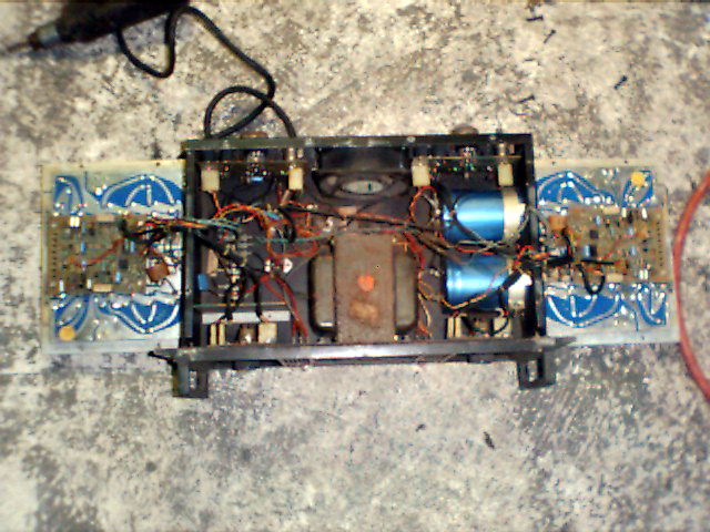 Now plug the power cable back into the re-built board leaving drive board removed. Power amp up and light should glow dim. Now install the drive board and re-assemble the amp. Always make sure you blow out the amp with an air hose. Power up the re-assembled amp with the drive boards bolted in place and cover removed. If light glows dimly, then check for audio signal by hooking up a speaker and some input source. If you have problems with signal you can swap the drive boards around to determine if one of them also needs repair.